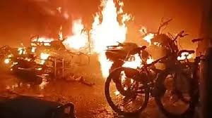 बेसमेंट पार्किंग में भीषण आग, 29 दोपहिया वाहन जलकर खाक, 5 घायल